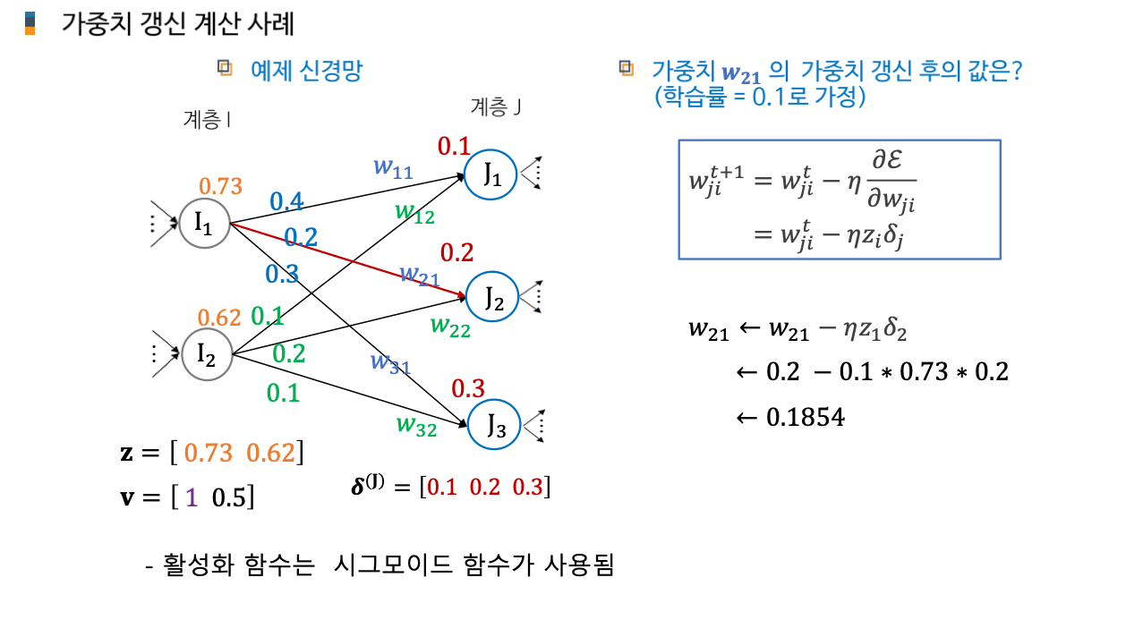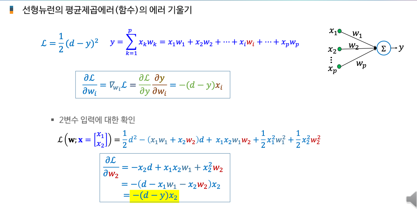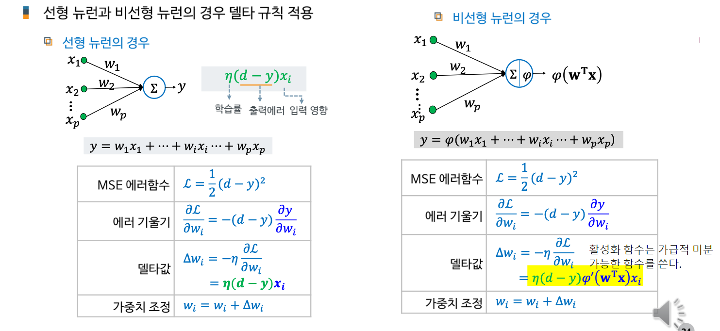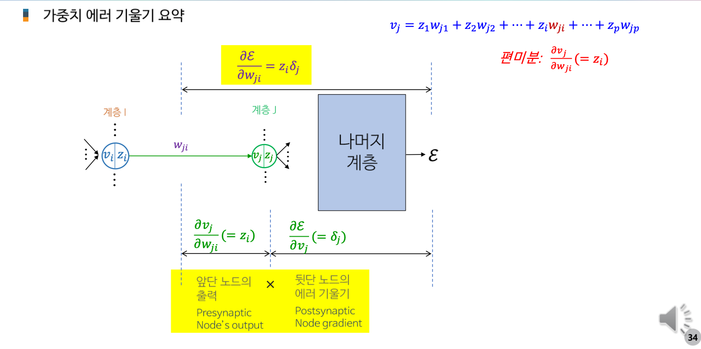 AI 인공지능/AI입문 [AI 입문] 신경망 학습 - 학습법 개관: 에러 정정 기법 손실함수 기울기 강하 기법 기울기 강하 기법의 신경망 학습 적용 개관 2. 단계층 신경망 학습: 델타 규칙 가중치에 대한 손실함수의 편미분 델타 규칙의 이해 3. 다계층 신경망 학습: 역전파 학습 알고리즘 역전파 학습 개념 합성함수의 미분 노드 에러 기울기 가중치 에러 기울기 오류 역전파 알고리즘 가중치 갱신 오류 역전파 알고리즘 공유하기 게시글 관리 KwanJoong DEV 'AI 인공지능 > AI입문' 카테고리의 다른 글 합성곱 신경망의 이해(Part2) (0) 2023.12.10 딥러닝과 CNN 이해 (Part1) (0) 2023.12.10 [AI 입문] 다층신경망(FNN)의 이해 (0) 2023.10.23 [AI 입문] 신경망 기초 (0) 2023.10.23 [AI 입문] 머신러닝(Machine Learning)의 이해 (0) 2023.10.23 Contents 당신이 좋아할만한 콘텐츠 합성곱 신경망의 이해(Part2) 2023.12.10 딥러닝과 CNN 이해 (Part1) 2023.12.10 [AI 입문] 다층신경망(FNN)의 이해 2023.10.23 [AI 입문] 신경망 기초 2023.10.23 댓글 0 + 이전 댓글 더보기