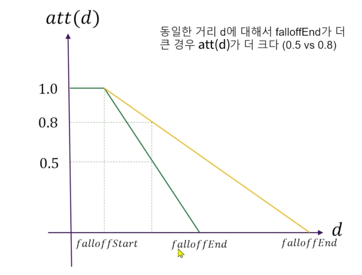falloffStart falloffEnd 이 두 가지를 이용한다.