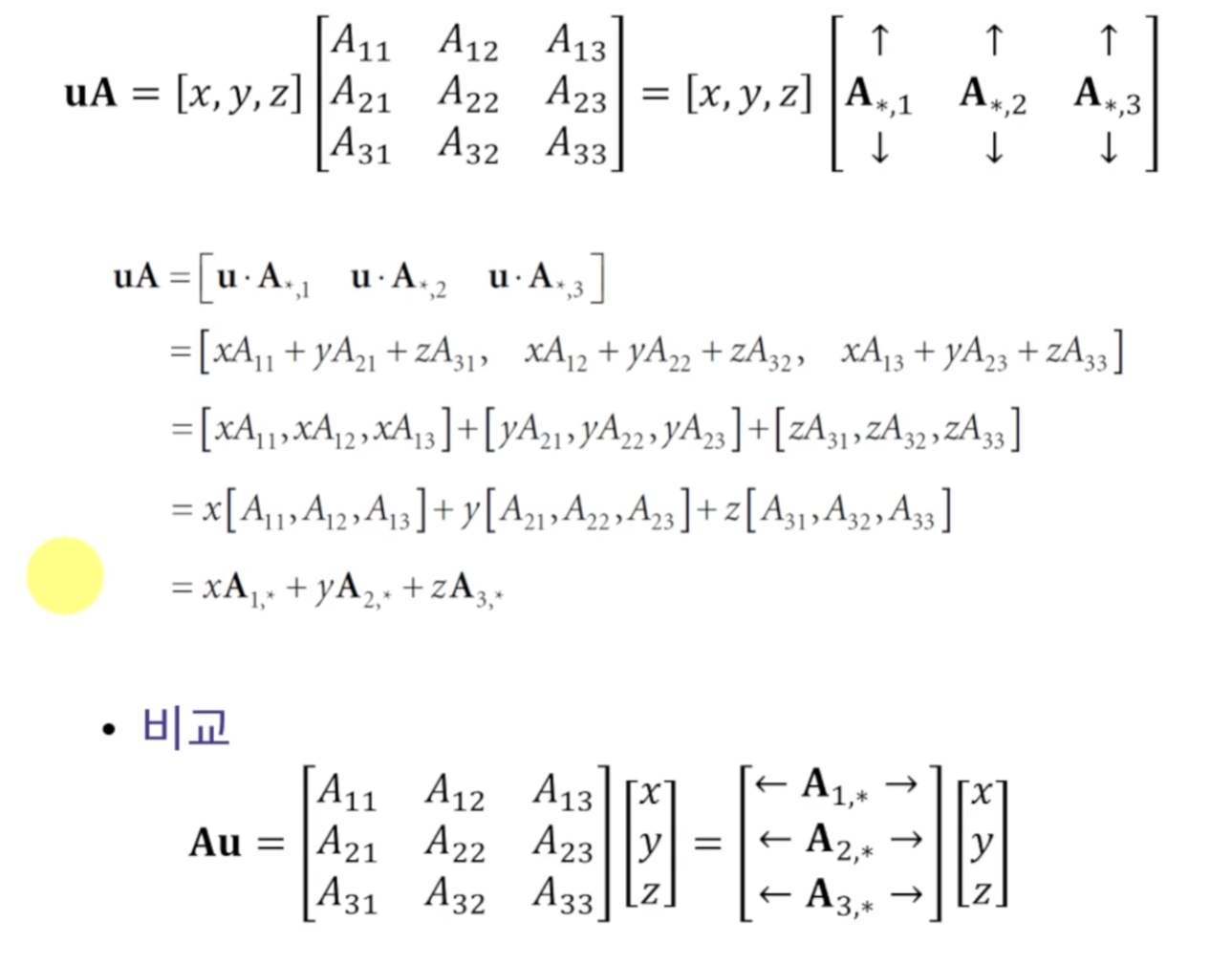 어떤 벡터를 이동, 회전, 스케일링 등등 Transformation 을 가하고 싶으면, 그 벡터에 행렬을 곱하면 된다.
