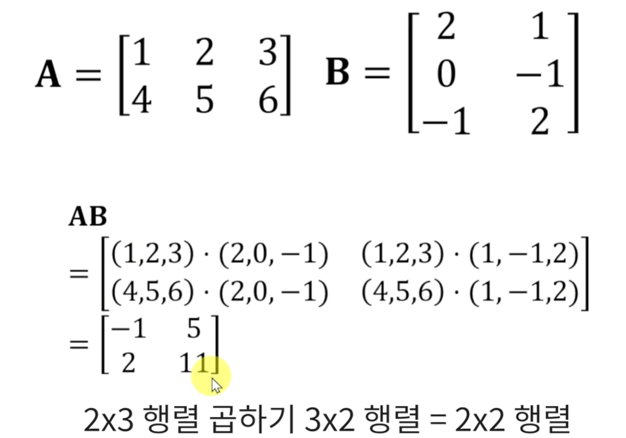 예를들어 다음과 같은 AB의 곱셈은 불가.
